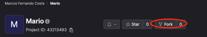 Vamos criar um fork do projeto Mario no seu usuário gitlab acesse: Projeto Mario